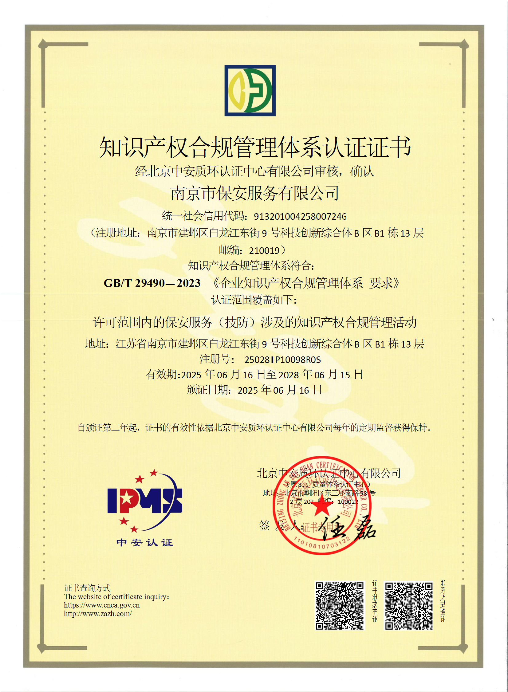 知識(shí)產(chǎn)權(quán)合規(guī)管理體系認(rèn)證證書