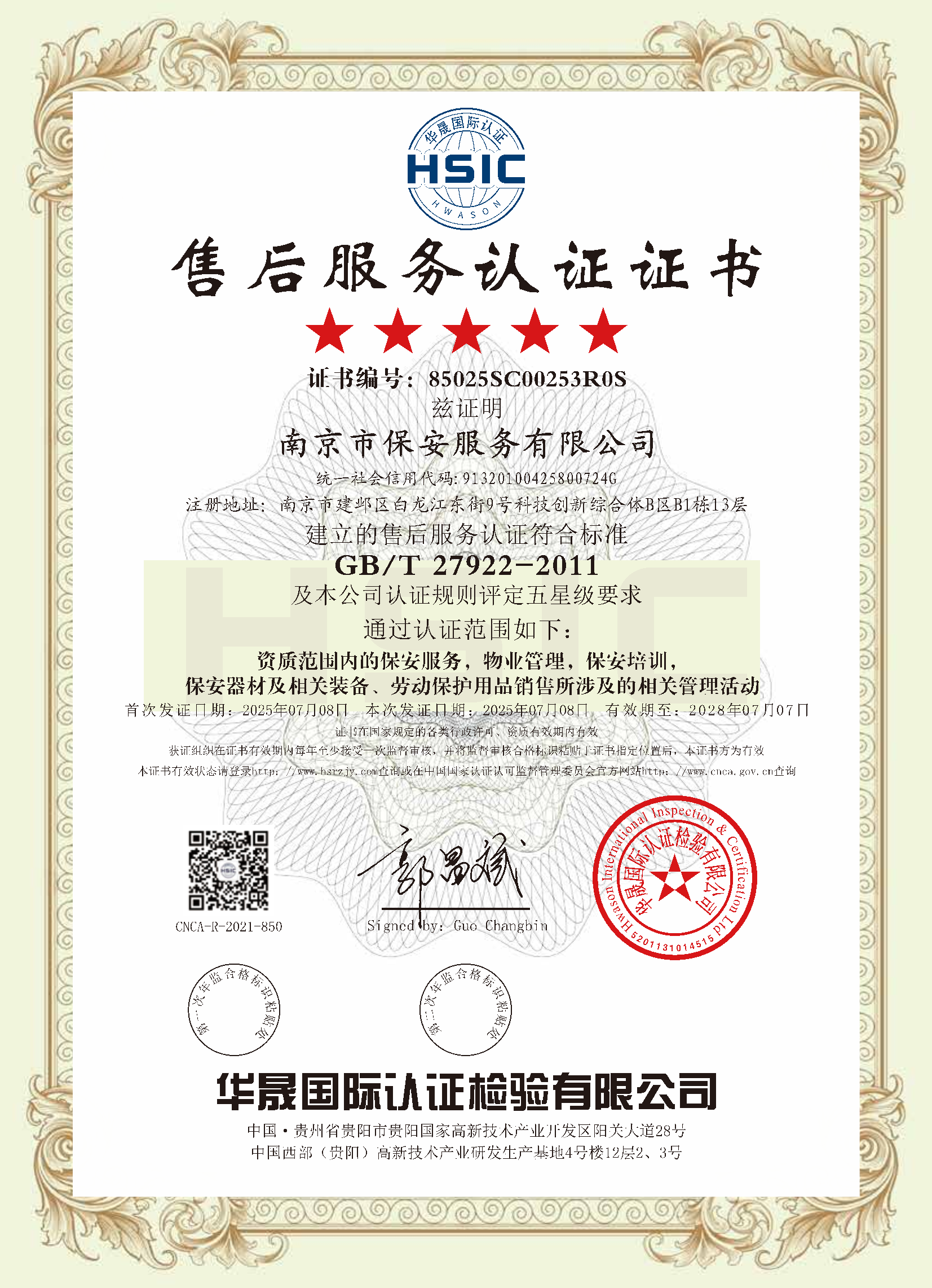 祝賀:南京市保安服務(wù)總公司通過企業(yè)誠(chéng)信管理體系認(rèn)證和企業(yè)社會(huì)責(zé)任管理體系認(rèn)證